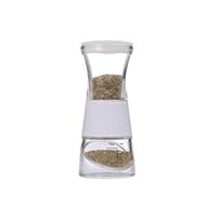 Prepsolutions by Progressive International is a unique product line of kitchen food-prep focused products, for use with salt, pepper, herbs and spices. Prepsolutions is different from traditional tabletop mills in that the focus is food preparation. Each mill and grinder is unfilled offering both versatility and customization. The ceramic grinding mechanism won't rust or corrode and is harder than carbon steel. Prepsolutions features include large capacity, high output, easy filling, easy adjustment of grind mechanism, less mess, ergonomic design and a modern and clean aesthetic. The Prepsolutions Combine multi spice grinder includes a removable base that catches, measures and dispenses accurate amounts of herbs and spices up to 1 tablespoon. Simply add your favorite combination of dried spices to the top portion and grind to release more flavor. The Combine has a fully adjustable, non corrosive, ceramic grind mechanism. It's simple design features a white storage lid, clear acrylic top and bottom and white center hiding the grind mechanism. The design allows for measuring and dispensing at the bottom of the grinder and storage of spices on the top. The Combine multi spice grinder has a 1/4-cup capacity.