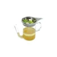 What a clever design! Make better, healthier gravy without the fat.Now a new deluxe design with a larger capacity, bigger handle, and a handy strainer attachment to separate out meat bits and large herbs.Simply pour your pan drippings into The Gravy Master and let the fat rise to the top. This fat separator pours from the bottom, not the top, leaving behind the fats for a lower fat, more flavorful gravy. This fat separator is a quality glass tool for years of use. It is dishwasher safe for easy cleanup. Use it for all fat separation tasks. With both standard and metric measures, this makes recipes easy. If you make gravies, get The Gravy Master.