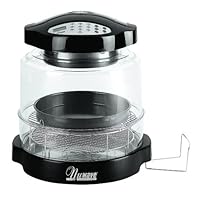 Without using any fats or oils, this digital-controlled infrared tabletop oven quickly and easily cooks meat, poultry, and fish, while keeping them moist on the inside and crisp and browned on the outside. Compared to a 3500-watt conventional oven, the 1500-watt infrared oven cooks food up to 50-percent faster and saves 85-percent more energy. Its patented trio of cooking methods includes conduction to apply heat directly to food, convection to circulate heat around food, and infrared radiant heat to penetrate food, cooking from the inside out. The unit's triple cooking methods allow for barbecuing, roasting, air frying, broiling, baking, steaming, dehydrating, and grilling, all without pre-heating or defrosting or the need for ventilation. Start the oven and watch food sizzle and brown under the clear, lightweight, highly durable polycarbonate dome. All oil splatters are self-contained, and the unit's base can be used as a serving tray. The exceptionally versatile oven offers a lightweight, portable design, which makes it a nice choice for use in a dorm or RV, on a boat, or simply as an extra oven when gathering with friends and family. All parts, except the powerhead, clean up easily by hand or in the dishwasher. Accessories include an extender ring, a reversible stainless-steel cooking rack, and a micro ceramic baking pan. An owner's manual and recipes are also included. The infrared oven measures approximately 14 by 14 by 16 inches and carries a one-year limited warranty.